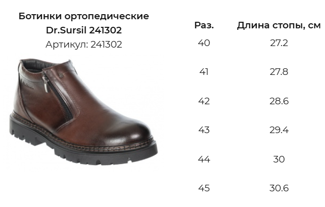 Ортопедические ботинки мужские Dr Sursil для профилактики плоскостопии. Обувь рекомендуется для профилактики болезней ног (плоскостопие, плоско-вальгусные стопы, пяточные шпоры, натоптыши и болезненные «косточки»). Зимние ботинки подходят для долгих прогулок в холодную погоду. Формоустойчивый задник удерживает пятку в естественном положении, формируя правильную биомеханику шага. Верх обуви изготовлен из натуральной кожи. Внутренняя подкладка из натуральной шерсти согревает и сохраняет тепло внутри. Эргономичная колодка обеспечивает свободу пальцев. Для удобства надевания две молнии по бокам обуви. Износостойкая гибкая подошва ТЭП гасит ударную нагрузку при ходьбе.